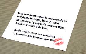 Le volvió a gritar, diciendo: "¿Qué no sabes que cuando das un regalo a alguien se supone que debe haber algo adentro?" La pequeña volteo hacia arriba con lágrimas en los ojos y dijo: "Oh, Papito, no está vacía, yo soplé besos dentro de la caja, todos para ti, Papi." El padre se sintió morir; puso sus brazos alrededor de su niña y le suplicó que lo perdonara.