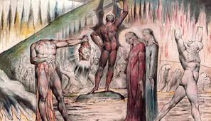 los iracundos: sus almas -encenegadas en aquel pantano- completamente desnudas, se golpean no solo con las manos, sino con la cabeza, con el pecho, con los pies, arrancándose la carne a pedazos con los dientes.