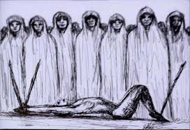En esta fosa se encuentra el que aconsejó a la fariseos que era necesario hacer sufrir a un hombre el martirio por todo el pueblo. Está atravesado, crucificado en tres palos y desnudo sobre el camino pues es preciso que sienta lo que pesa cada uno de los pasan.